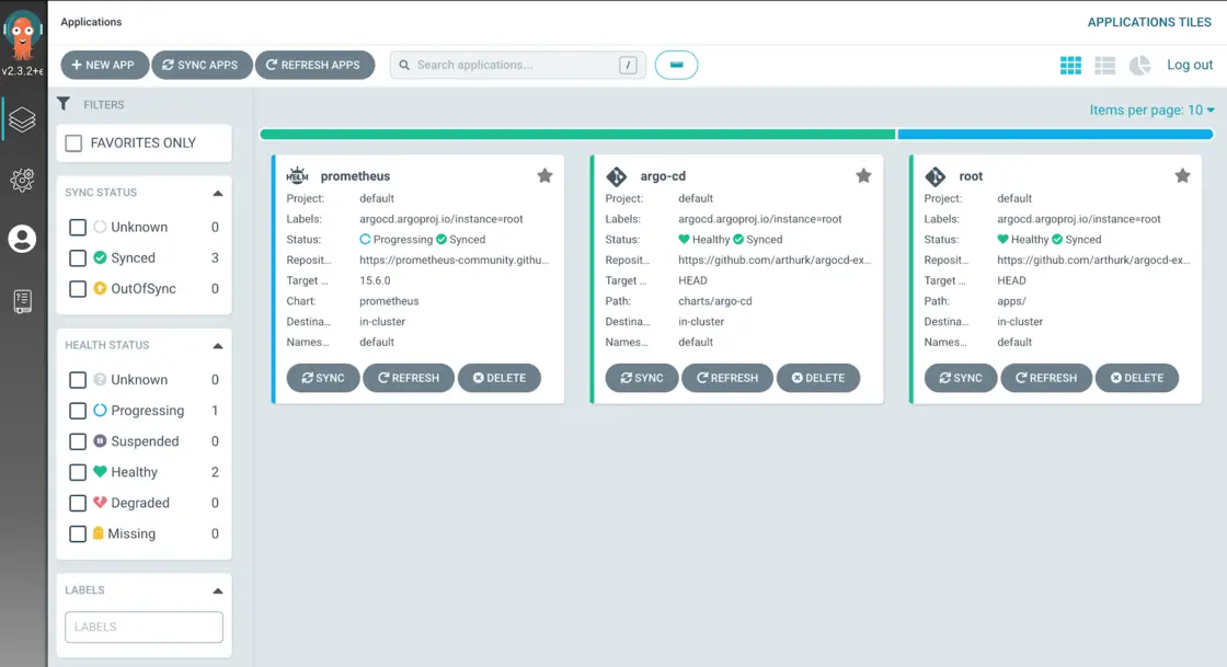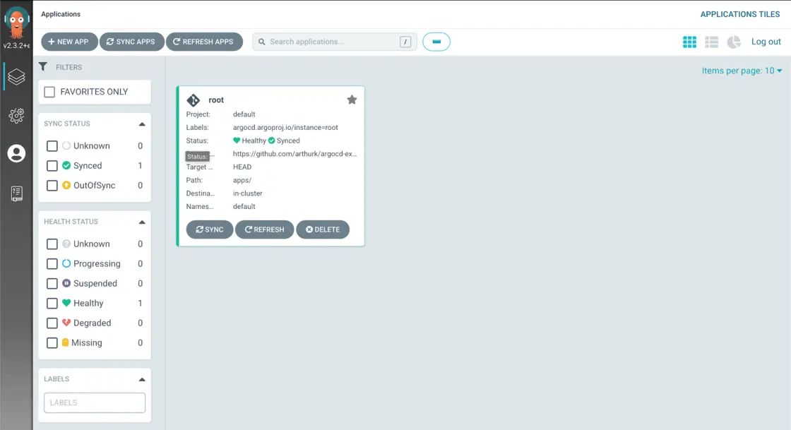 Wir haben eine Root-Anwendung erstellt, die das App-of-Apps Pattern verwendet, um unsere Anwendungen auf deklarative Weise zu verwalten.